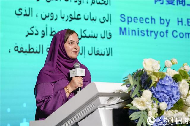 阿曼商工部前次大臣阿希拉·薩姆薩米致辭。人民網(wǎng) 塔里克·易卜拉欣攝