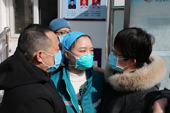 離別時刻,家人縱有千般不舍,只能道一聲“珍重”,并目送他們?nèi)デ胺?,因為這場戰(zhàn)“疫”必須要打贏!