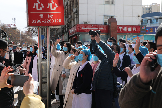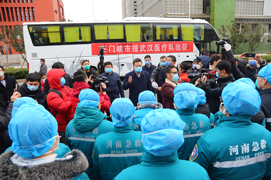2月15日上午11點半,三門峽市委書記劉南昌,市委副書記、市長安偉等領(lǐng)導(dǎo)在三門峽為白衣戰(zhàn)士們深情送行。