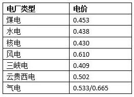 1、水電、風電、三峽電、云貴西電均為2019年的上網電價;