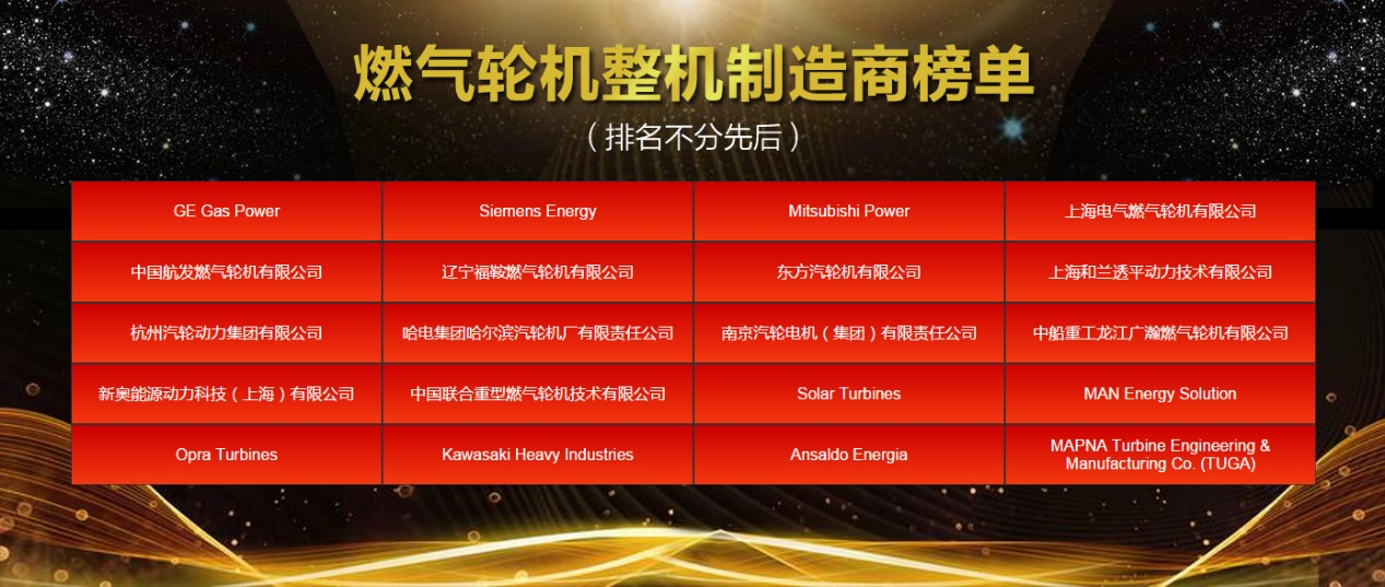 全球燃?xì)廨啓C(jī)制造商老牌三巨頭、國內(nèi)三大動力集團(tuán)及國內(nèi)外部分新興燃?xì)廨啓C(jī)制造商共計20家企業(yè)上榜。
