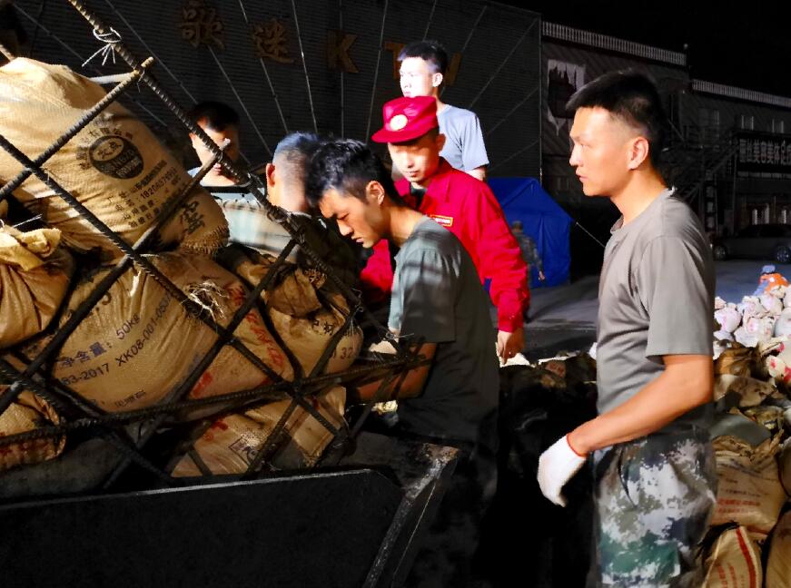 今天上午1臺挖掘機(jī)和1臺推土機(jī)已被運(yùn)送至決口右岸,救援隊(duì)員抓緊轉(zhuǎn)運(yùn)鋼筋籠和沙袋,19時,救援人員把沙袋裝入鋼筋籠,由推土機(jī)將其推入河中,以封堵決口、加固堤壩,有效加速決口合攏。