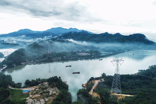 南方電網(wǎng)已形成“八交十一直”西電東送大通道,送電能力達(dá)到5800萬(wàn)千瓦,五年累計(jì)送電量達(dá)到1.07萬(wàn)億度。圖為昆柳龍直流工程廣東段線(xiàn)路跨越清遠(yuǎn)北江。