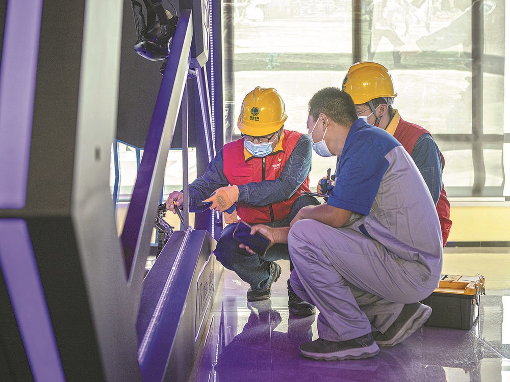 10月28日,窗外寒風(fēng)刺骨,室內(nèi)暖意融融。在新疆游客集散中心的二樓,十幾名游客正體驗(yàn)大型虛擬現(xiàn)實(shí)(VR)項(xiàng)目。烏魯木齊供電公司客戶(hù)經(jīng)理安志偉、孫勵(lì)斌正在新疆游客集散中心檢查用電情況。