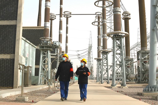 國(guó)網(wǎng)河北電力員工在1000千伏特高壓雄安站開(kāi)展特巡。