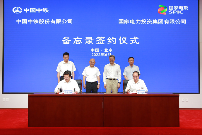 本網(wǎng)訊 6月29日,在中國中鐵董事長、黨委書記陳云和國家電投董事長、黨組書記錢智民的共同見證下,中國中鐵副總裁、黨委常委劉寶龍與國家電投總會計師、黨組成員陳西代表雙方簽署戰(zhàn)略合作協(xié)議,中國中鐵總裁助理耿樹標(biāo)和國家電投總經(jīng)理助理兼發(fā)展部主任侯學(xué)眾代表雙方簽署戰(zhàn)略合作試點(diǎn)項(xiàng)目啟動備忘錄。