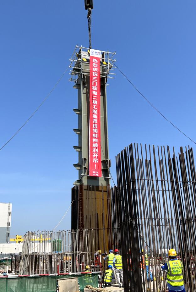本網(wǎng)訊 7月27日上午,中國(guó)能建設(shè)計(jì)參建的三門核電二期工程循泵房鋼結(jié)構(gòu)正式開吊。