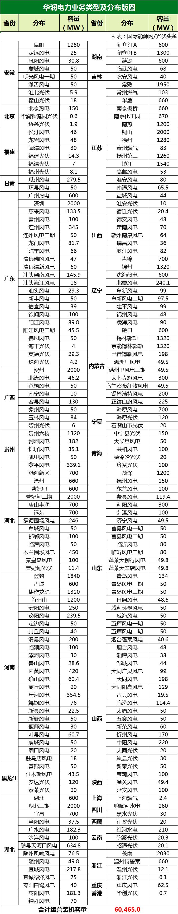 華潤電力各省能源業(yè)務(wù)版圖如下: