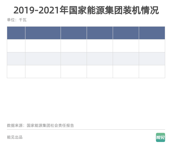 從折線斜率可以清晰看出,只有國(guó)家能源集團(tuán)2021年新增裝機(jī)量高于2020年,華能、大唐、國(guó)家電投三家則2021年增量低于2020年,華電缺失數(shù)據(jù)(僅發(fā)布新聞,未發(fā)布完整版報(bào)告)。