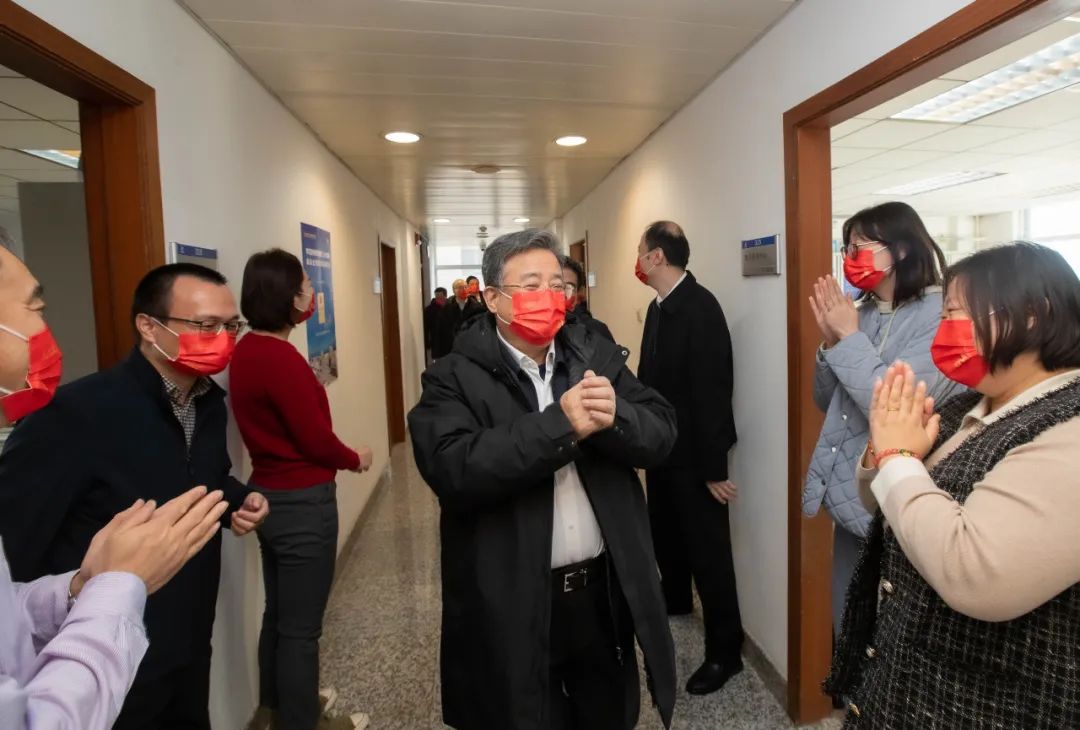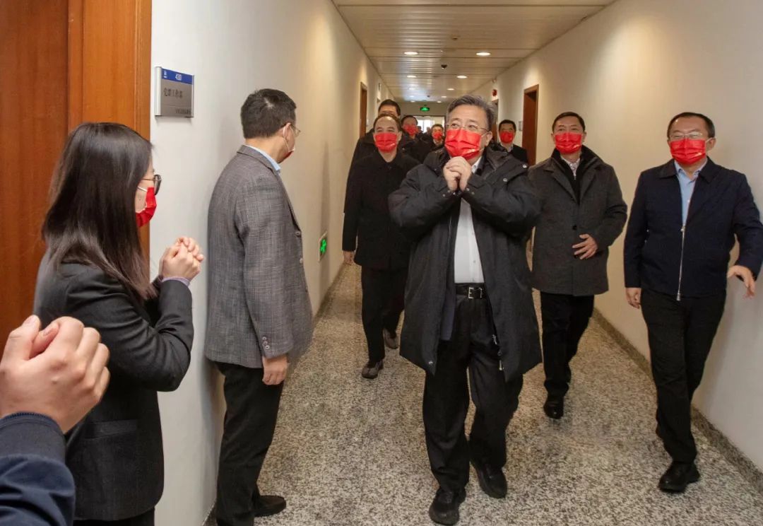慰問期間,余劍鋒一行走進辦公室,與同事們互賀新年祝福。