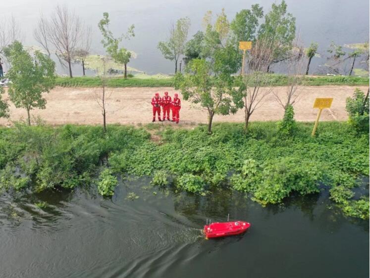 8月5日,天津靜海大清河,技術人員利用無人偵測船不間斷監(jiān)測水情,探測水下地形地物,快速準確獲取水下堆體數(shù)據(jù)及模型……