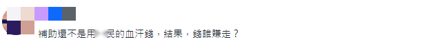 還有島內(nèi)網(wǎng)民表示質(zhì)疑,“補(bǔ)助還不是用民眾的血汗錢,結(jié)果,錢誰(shuí)賺走?”