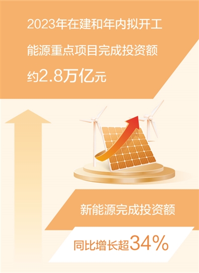 記者近日從國家能源局獲悉:2023年,我國能源投資保持快速增長,據(jù)監(jiān)測,全國在建和年內(nèi)擬開工能源重點項目完成投資額約2.8萬億元。分類別看,常規(guī)項目和新業(yè)態(tài)項目完成投資額同比分別增長16%和152.8%。分地區(qū)看,東部、中部、西部地區(qū)完成投資額同比分別增長28.5%、13.6%、22.5%。
