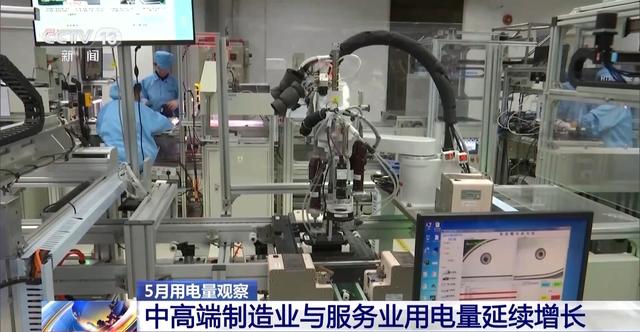 從各地亮眼的用電量數(shù)據(jù)中,記者還發(fā)現(xiàn),今年我國(guó)在中高端制造業(yè)與服務(wù)業(yè)的用電量都有顯著的增長(zhǎng),5月份,高技術(shù)及裝備制造業(yè)、服務(wù)業(yè)用電量增長(zhǎng)均高于全社會(huì)用電量。