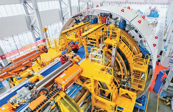 圖為當日,在鐵建重工長沙第一產(chǎn)業(yè)園,工人在調(diào)試“江漢新石器號”隧道掘進機。 新華社記者 陳思汗/攝