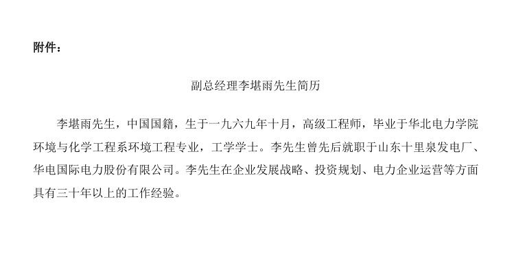 華電國際電力股份有限公司(以下簡稱“華電國際”)董事長、副總經(jīng)理調(diào)整。