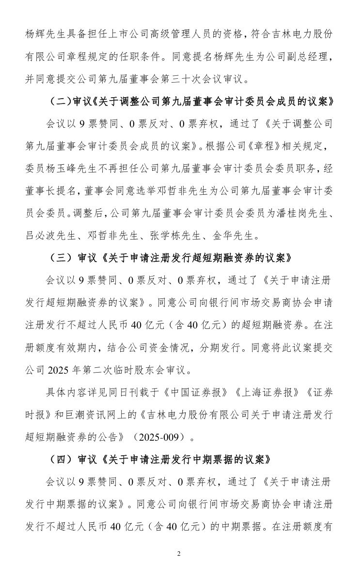 2月18日,吉電股份發(fā)布公告稱,公司第九屆董事會第三十次會議審議通過了《關于聘任楊輝先生為公司副總經理的議案》,同意聘任楊輝先生為公司副總經理。