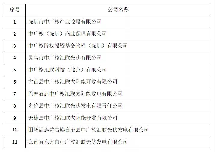 二、經(jīng)檢索查詢發(fā)現(xiàn),目前有深圳市中廣核產(chǎn)業(yè)控股有限公司、中廣核(深圳)商業(yè)保理有限公司等11家公司(附表)冒名使用“中廣核”字號(hào)或商標(biāo),對我集團(tuán)品牌造成嚴(yán)重侵權(quán)。