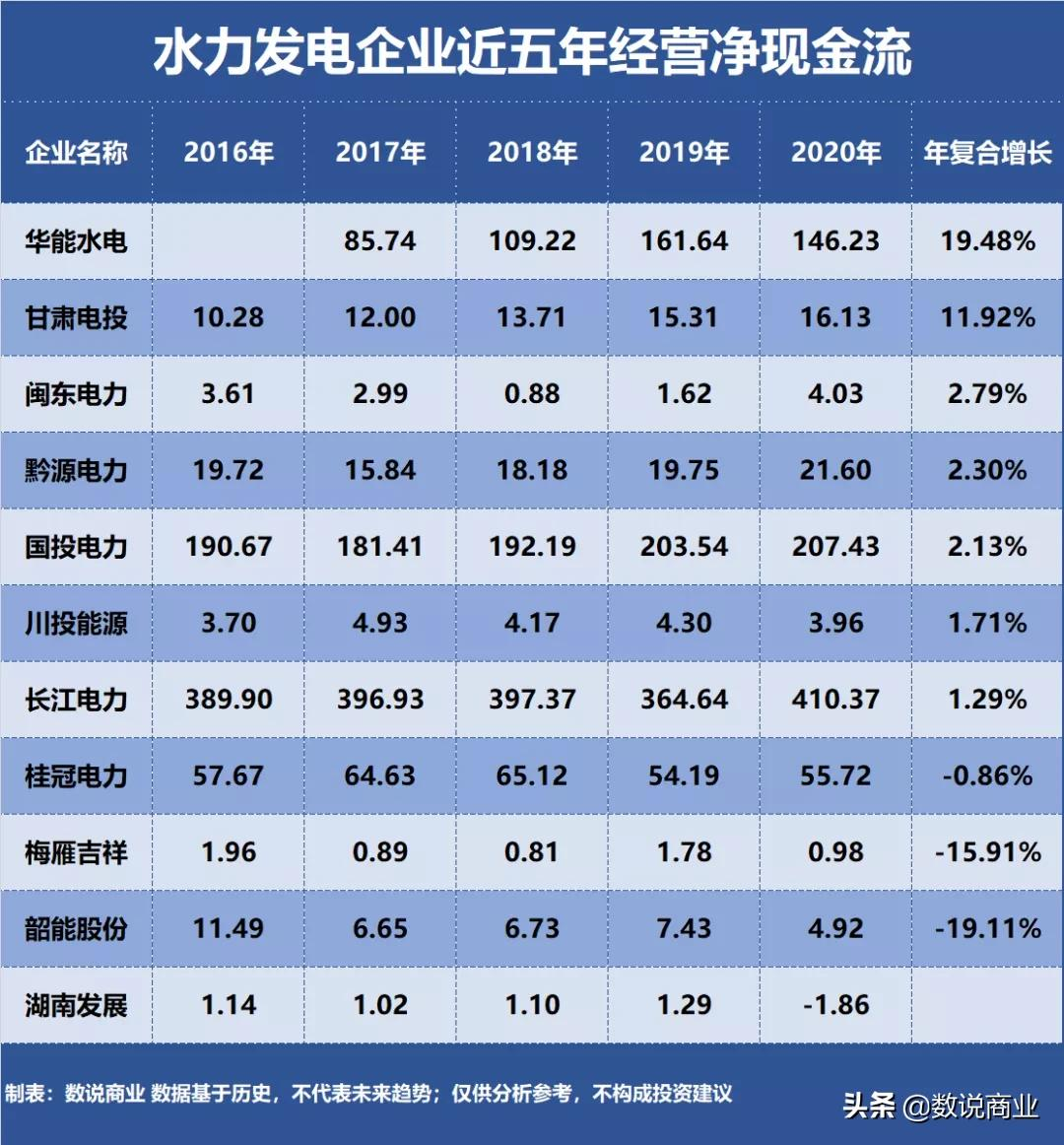 從近五年經(jīng)營凈現(xiàn)金流復(fù)合增長來看,華能水電和甘肅電投等兩家企業(yè)復(fù)合增長超過兩位數(shù),其中甘肅電投復(fù)合增長達(dá)到11.92%。