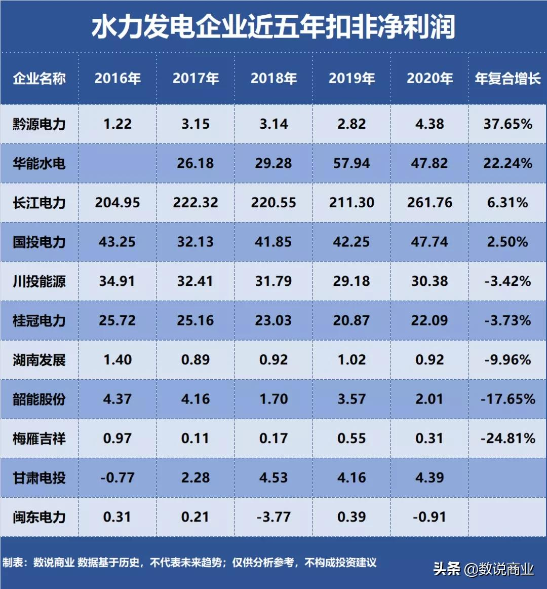 從近五年扣非凈利潤復(fù)合增長來看,黔源電力、華能水電、長江電力、國投電力等4家企業(yè)實(shí)現(xiàn)正增長,其中長江電力復(fù)合增長達(dá)到6.31%。