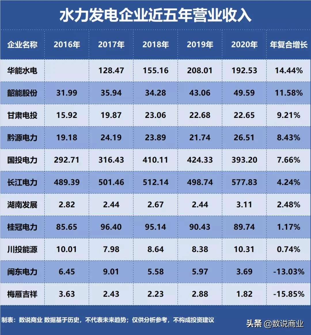 從近五年?duì)I收復(fù)合增長來看,華能水電和韶能股份等兩家企業(yè)復(fù)合增長超過兩位數(shù),其中華能水電復(fù)合增長達(dá)到14.44%。