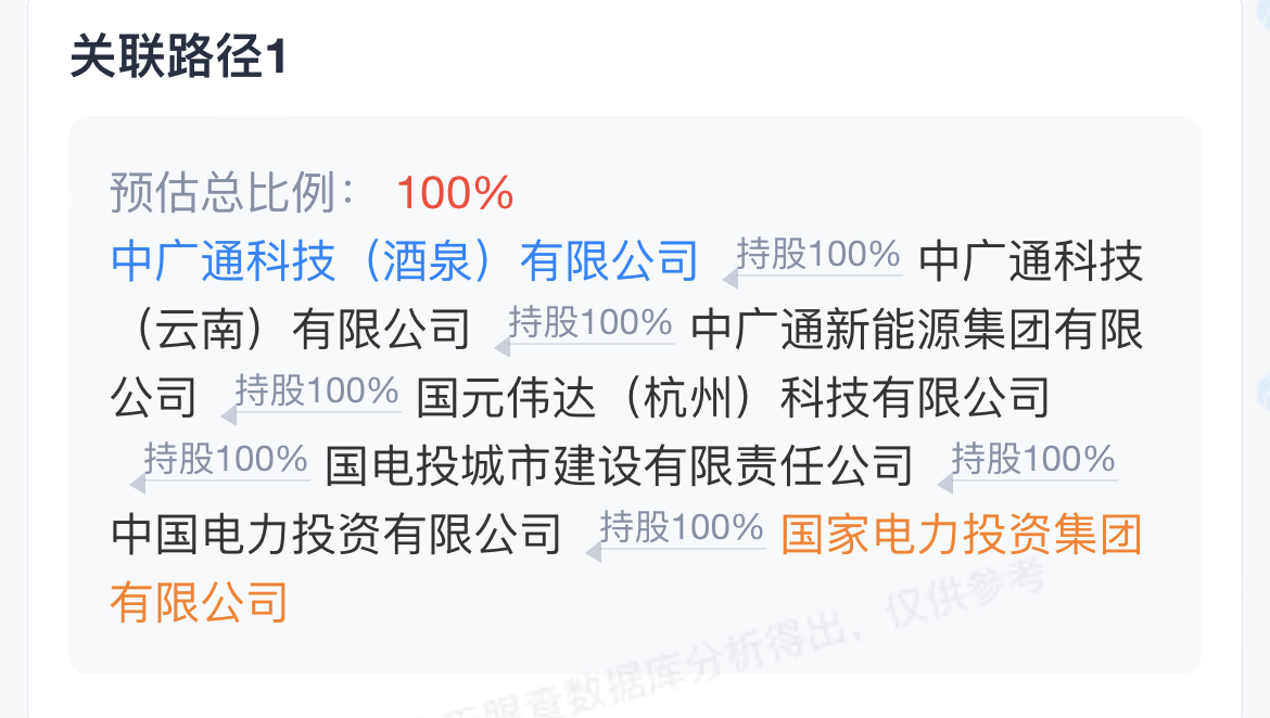 據(jù)天眼查,追溯其股權(quán)結(jié)構(gòu),中廣通科技酒泉公司為國家電力投資集團有限公司全資控股的七級子公司。國家電投集團是全球最大的清潔能源發(fā)電企業(yè)、國內(nèi)五大發(fā)電央企之一。