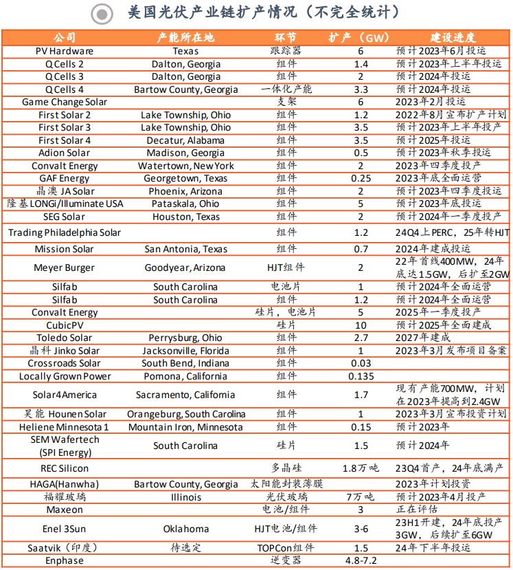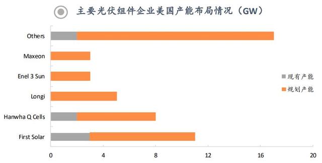 來(lái)源:InfoLink,Solar Power World,SEIA,Wood Mackenzie,平安證券(上述項(xiàng)目暫未計(jì)入阿特斯7月剛宣布的5GW美國(guó)工廠計(jì)劃)