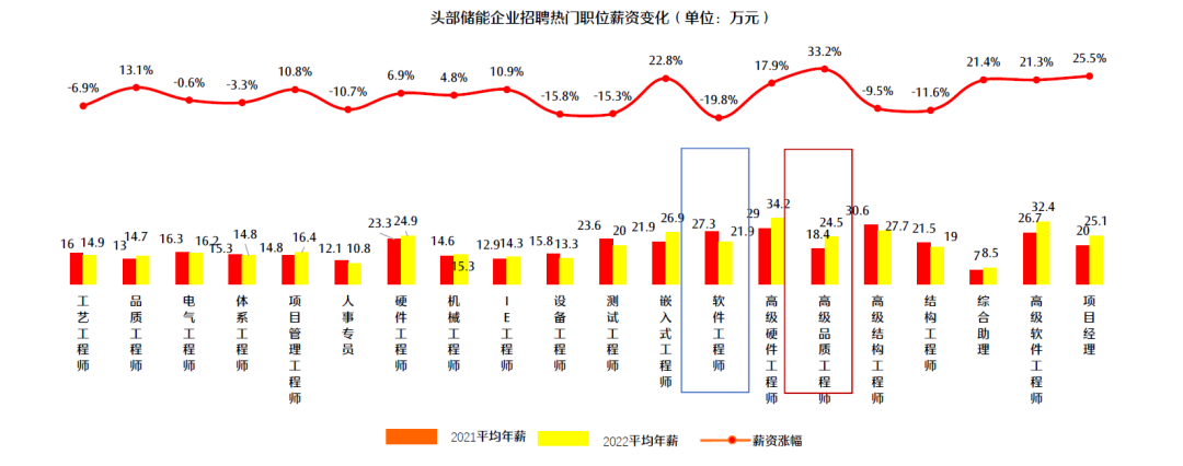 2022年頭部儲(chǔ)能企業(yè)熱招崗位漲薪變化