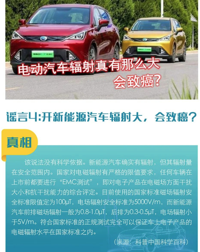 近日,中國互聯(lián)網(wǎng)聯(lián)合辟謠平臺發(fā)布《2023年新能源汽車行業(yè)辟謠榜》,其中針對網(wǎng)上流傳的“開新能源汽車輻射大、會致癌”說法進行了權(quán)威辟謠。