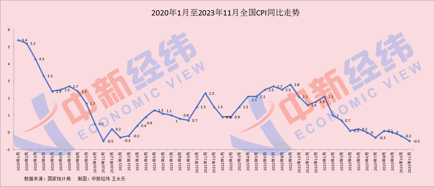 國家統(tǒng)計(jì)局?jǐn)?shù)據(jù)顯示,2023年11月,全國CPI環(huán)比下降0.5%,同比下降0.5%。CPI同比連續(xù)兩月處于負(fù)值區(qū)間,且二次探底,創(chuàng)2020年12月以來最大降幅。