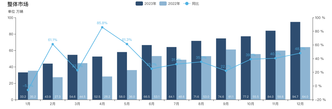 剛剛過去的2023年,軌跡明顯改變,增速放緩,新能源汽車產(chǎn)銷分別完成958.7萬輛和949.5萬輛,同比分別增長35.8%、37.9%。