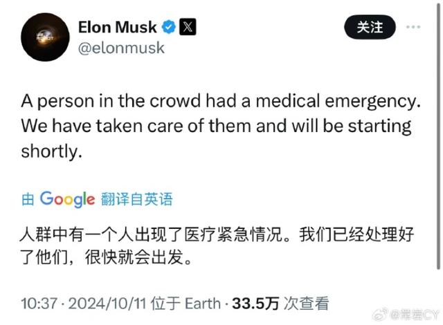 10:32 在活動(dòng)現(xiàn)場(chǎng)有人暈倒。馬斯克在推特上回復(fù)稱,由于有人需要緊急醫(yī)療,特斯拉將在開場(chǎng)之前先照顧他們。