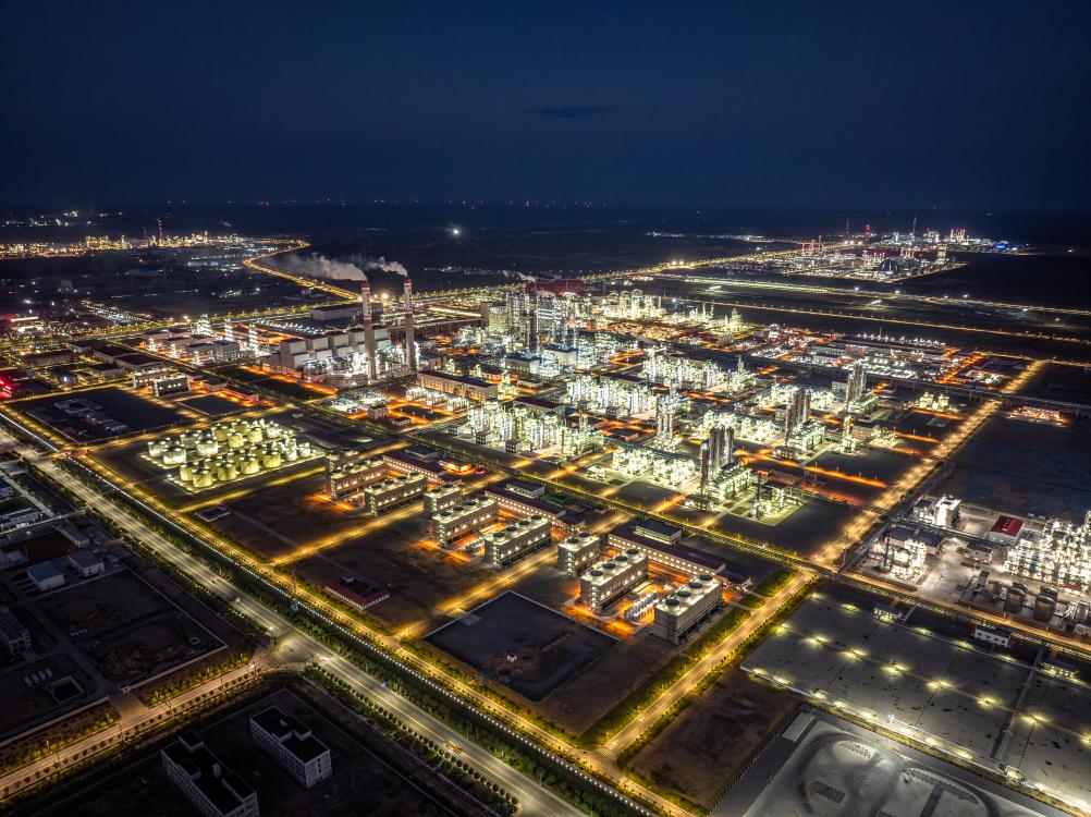 航拍榆林化學廠區(qū)夜景。(受訪者供圖)