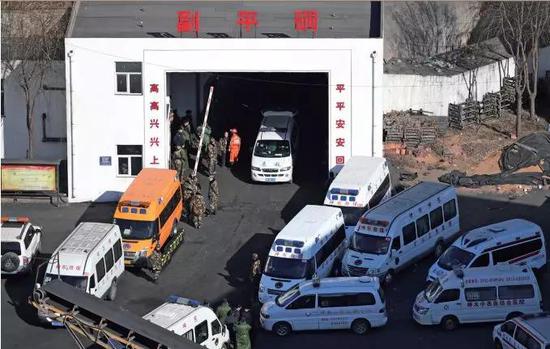百吉礦業(yè)李家溝煤礦,位于生產(chǎn)調(diào)度中心大樓旁的“副平硐”,礦工們平時就是從此處進(jìn)入礦井中作業(yè)。1 月13日, 事故發(fā)生后的井口,停滿了救援車輛。
