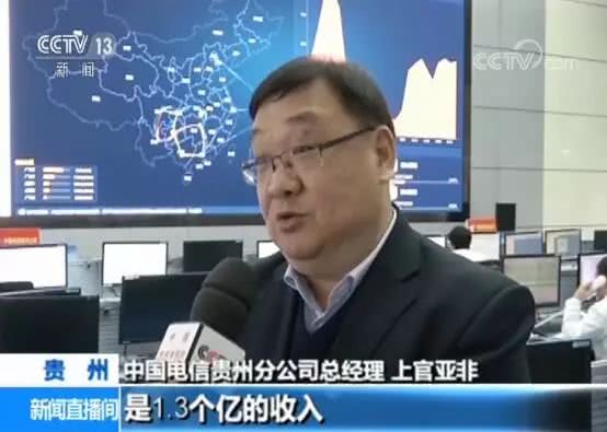 “中國電信貴州分公司總經(jīng)理 上官亞非:我們在2016年的時(shí)候是1500萬的收入,在2017年的時(shí)候是5300萬的收入,2018年本來定的計(jì)劃是八千萬的收入,結(jié)果現(xiàn)在我們統(tǒng)計(jì)出來是1.3個(gè)億的收入。增長超過百分之百?!?/p>