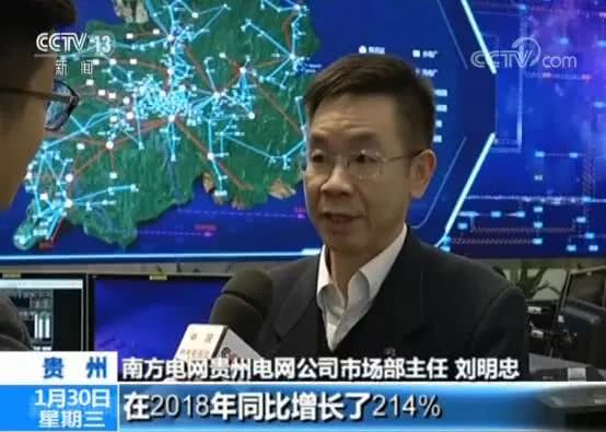 “南方電網(wǎng)貴州電網(wǎng)公司市場部主任 劉明忠:(2018年用電量)主要是兩個(gè)特點(diǎn),一個(gè)是我們貴州省傳統(tǒng)的十大高載能行業(yè),其中的有一些行業(yè)還在穩(wěn)步增長,另外值得關(guān)注的是我們貴州省一個(gè)新興產(chǎn)業(yè),出現(xiàn)了迅猛的發(fā)展,以大數(shù)據(jù)為例,大數(shù)據(jù)的用電量的話,在2018年同比增長了214%,那這個(gè)增長的速度是非??斓?。”