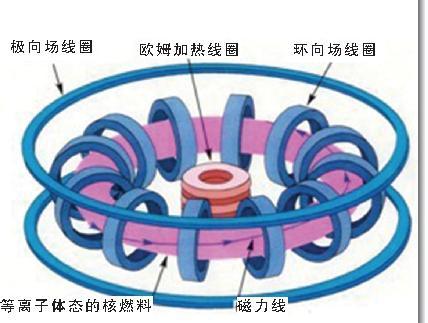 還有什么約束辦法嗎?因?yàn)榫圩冃枰蟽|度高溫,不能用任何容器盛裝,所以人類想到用強(qiáng)磁場(chǎng)把帶電粒子懸浮起來(lái),即磁約束。