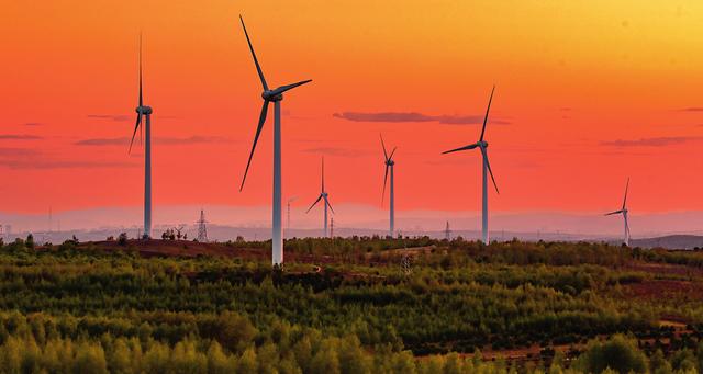沙漠深處,一塊塊光伏板正被架設(shè)起來(lái),猶如沙地長(zhǎng)出一片藍(lán)色的海洋。廣袤草原上,一臺(tái)臺(tái)巨大的風(fēng)力發(fā)電機(jī)巍然林立,近百米長(zhǎng)的葉片呼嘯轉(zhuǎn)動(dòng),構(gòu)成一幅壯觀景象。
