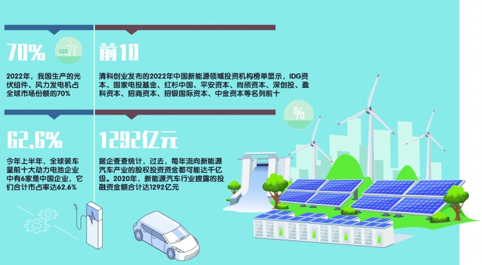 以上并非謬贊。據(jù)國家能源局及咨詢機構(gòu)SNE Research統(tǒng)計數(shù)據(jù)來看,我國生產(chǎn)的光伏組件、風力發(fā)電機占全球市場份額的70%,新能源汽車動力電池裝車量占世界的60%。在新能源領(lǐng)域,我國擔當?shù)闷?ldquo;領(lǐng)先”之稱。