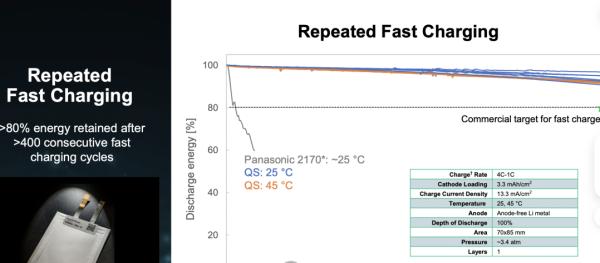 與此同時(shí),測(cè)試數(shù)據(jù)還顯示,配備 QuantumScape電池的電動(dòng)汽車(chē),WLTP 續(xù)航里程為 500-600公里(311—373 英里),在電池的全生命周期內(nèi),可以行駛超過(guò)50萬(wàn)公里(約311,000 英里),不會(huì)有任何續(xù)航能力衰退。