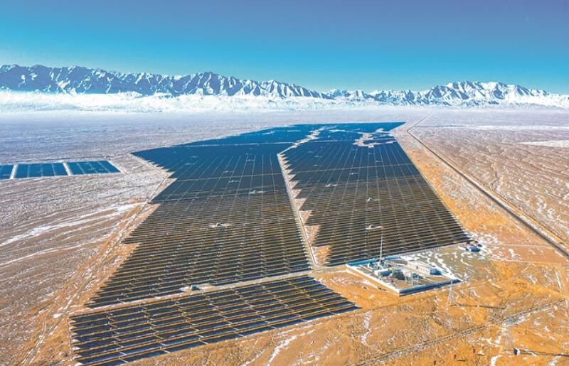 中國石油玉門油田200兆瓦光伏發(fā)電項目在戈壁之中現(xiàn)“藍(lán)海”。朱俊霖攝