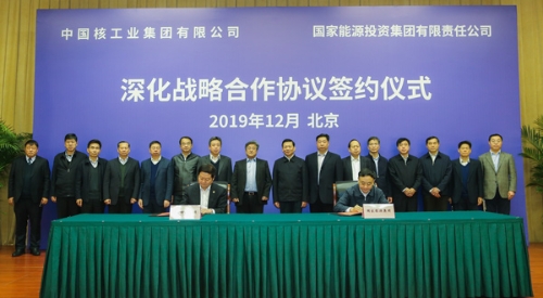 中國電力網(wǎng)訊 12月29日,在中核集團黨組書記、董事長余劍鋒,國家能源集團黨組書記、董事長王祥喜等共同見證下,中核集團黨組成員、副總經(jīng)理李清堂與國家能源集團黨組成員、副總經(jīng)理高嵩簽署了兩集團深化戰(zhàn)略合作協(xié)議,雙方將在項目開發(fā)、科技創(chuàng)新、海外市場拓展、人才培養(yǎng)、運營管理等領(lǐng)域深化戰(zhàn)略合作關(guān)系,充分發(fā)揮雙方優(yōu)勢,實現(xiàn)互利共贏、共同發(fā)展。國家能源集團黨組副書記、總經(jīng)理劉國躍主持儀式。