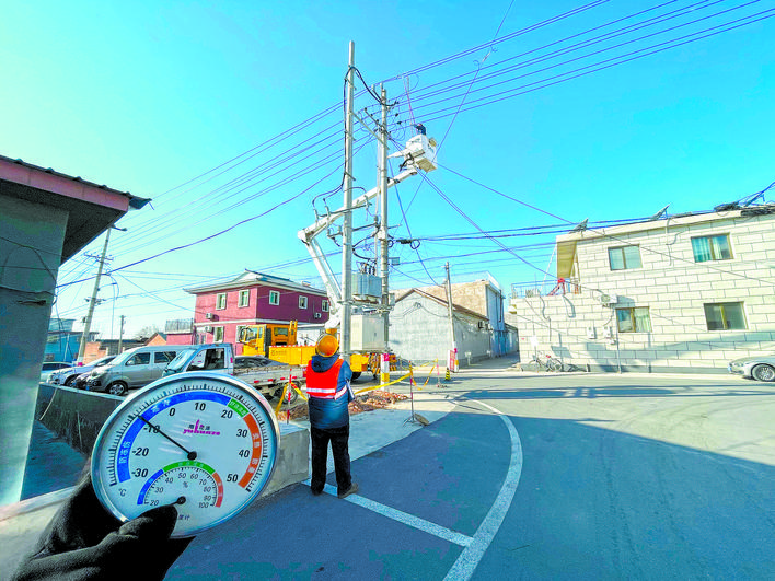 圖② 1月6日,北京平谷供電公司帶電班開展帶電接火作業(yè),保障電力可靠供應。黃曉東 張強 攝