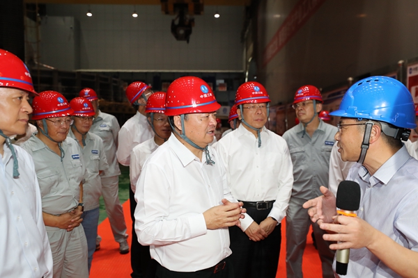 白鶴灘水電站是當(dāng)今世界在建規(guī)模最大、技術(shù)難度最高的水電工程。郝鵬來到白鶴灘水電站,登上壩頂,俯瞰工程全貌,深入地下廠房左岸1號機組、右岸14號機組,看望慰問奮戰(zhàn)在一線的企業(yè)干部職工,與大家親切交流,詳細了解工程總體規(guī)劃、世界最大百萬千瓦水輪發(fā)電機組發(fā)電、庫區(qū)生態(tài)環(huán)境保護等情況。郝鵬指出,白鶴灘水電站是中央企業(yè)全產(chǎn)業(yè)鏈協(xié)同創(chuàng)新、自主創(chuàng)新的典型范例,由中國三峽集團牽頭,國家電網(wǎng)、東方電氣集團、哈電集團、中國電建、中國能建等積極參與,在水電工程的設(shè)計規(guī)劃、材料科學(xué)、裝備制造、施工技術(shù)、智能管理等領(lǐng)域?qū)崿F(xiàn)了多項技術(shù)創(chuàng)新,創(chuàng)造了多個世界第一,令人鼓舞振奮、倍感自豪。要再接再厲、苦干實干,科學(xué)有序推進后續(xù)各項工作,高標(biāo)準高質(zhì)量打造精品工程,確保全部工程如期建成投產(chǎn)、安全穩(wěn)定運行,為實施好“西電東送”國家重大工程,保障國家能源安全提供有力支撐。