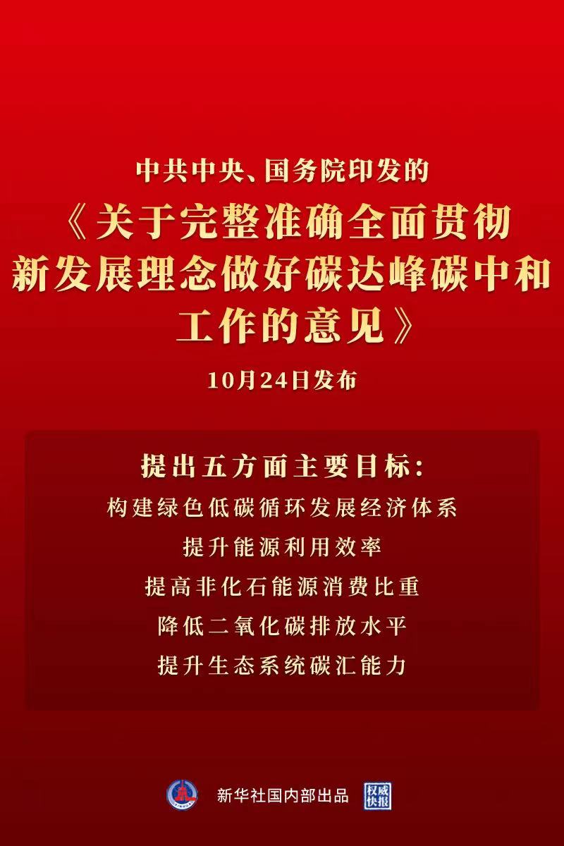 10月24日,中共中央 國務院正式發(fā)布《關于完整準確全面貫徹新發(fā)展理念做好碳達峰碳中和工作的意見》,內(nèi)容極其豐富。文件強調(diào):