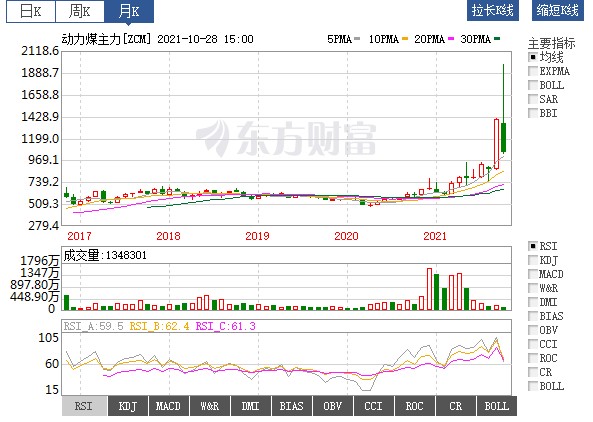 由K線圖上可知,煤價(jià)在今年4月突破了長(zhǎng)達(dá)若干年的大箱體,開始了瘋狂的上升之旅。從月線上看,如今一根長(zhǎng)上影線避雷針,從技術(shù)上來講,死翹翹了。