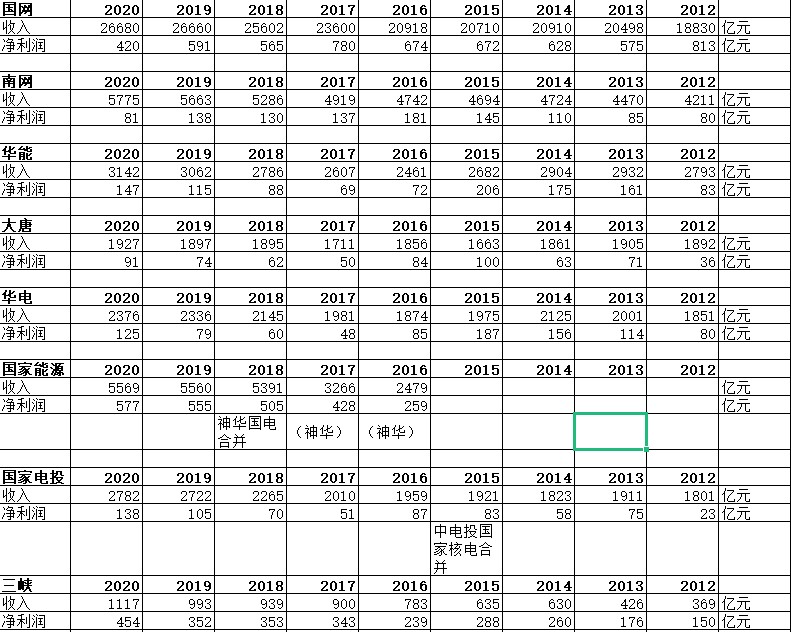 電網(wǎng)、發(fā)電央企2012-2020年營收、利潤(單位:億元,人民幣)