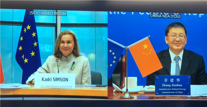 本網(wǎng)訊 3月31日,中國國家能源局局長章建華在北京通過視頻形式與歐盟能源委員西姆森共同主持召開第十次中歐能源對(duì)話。