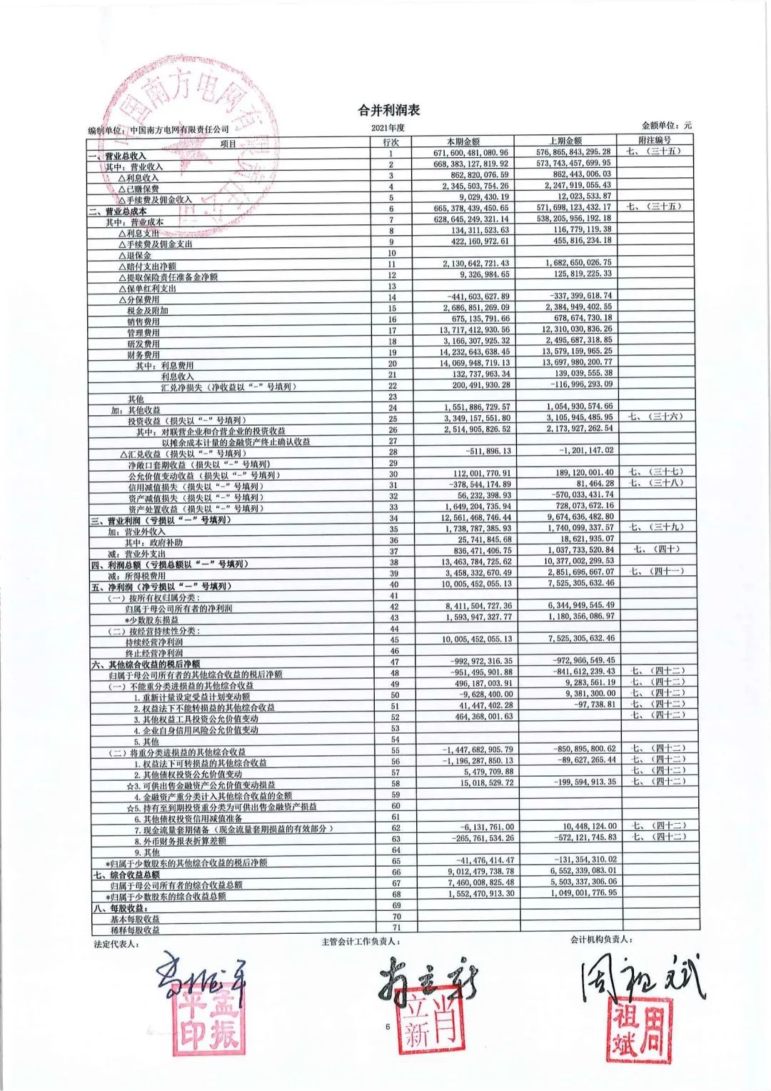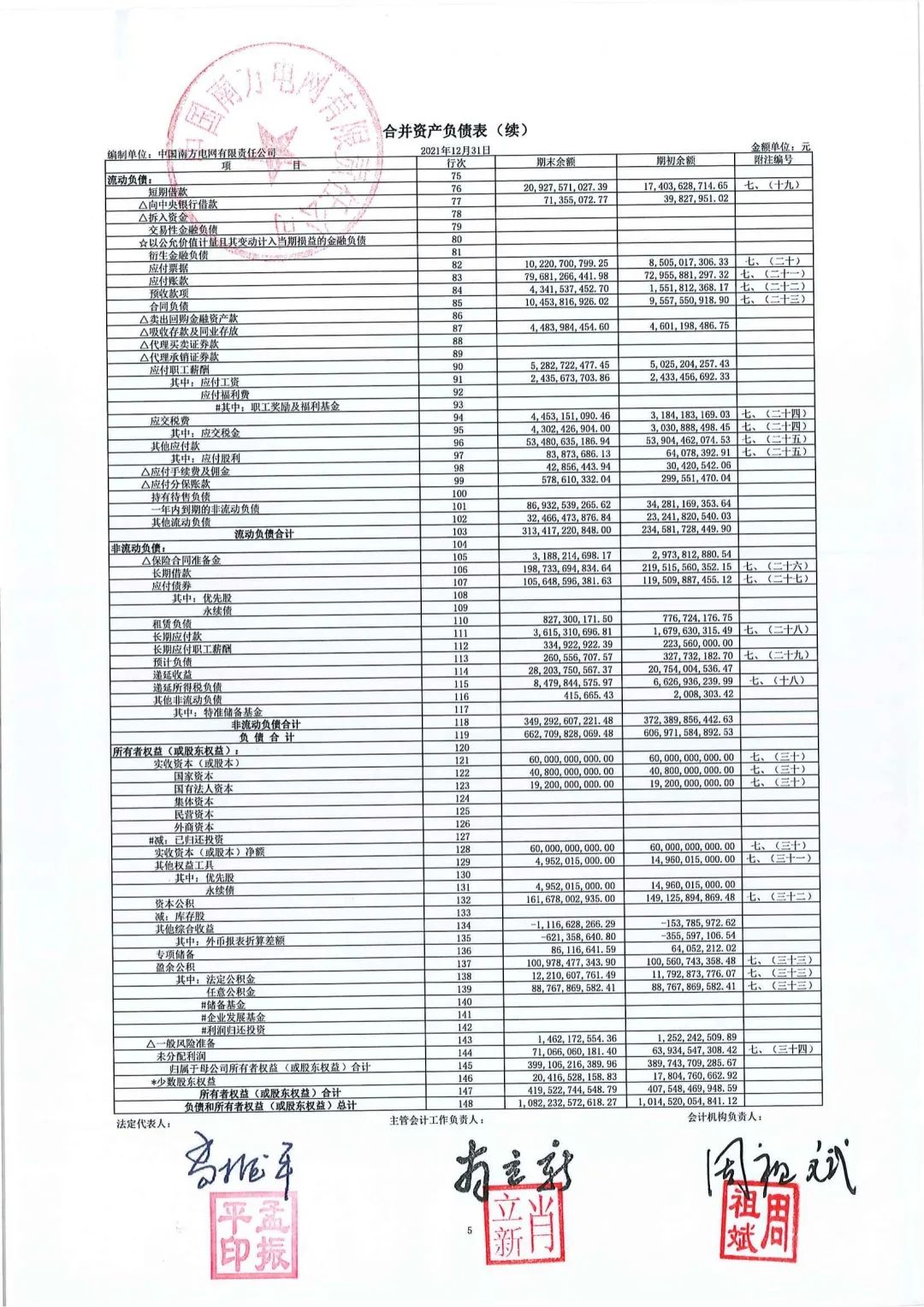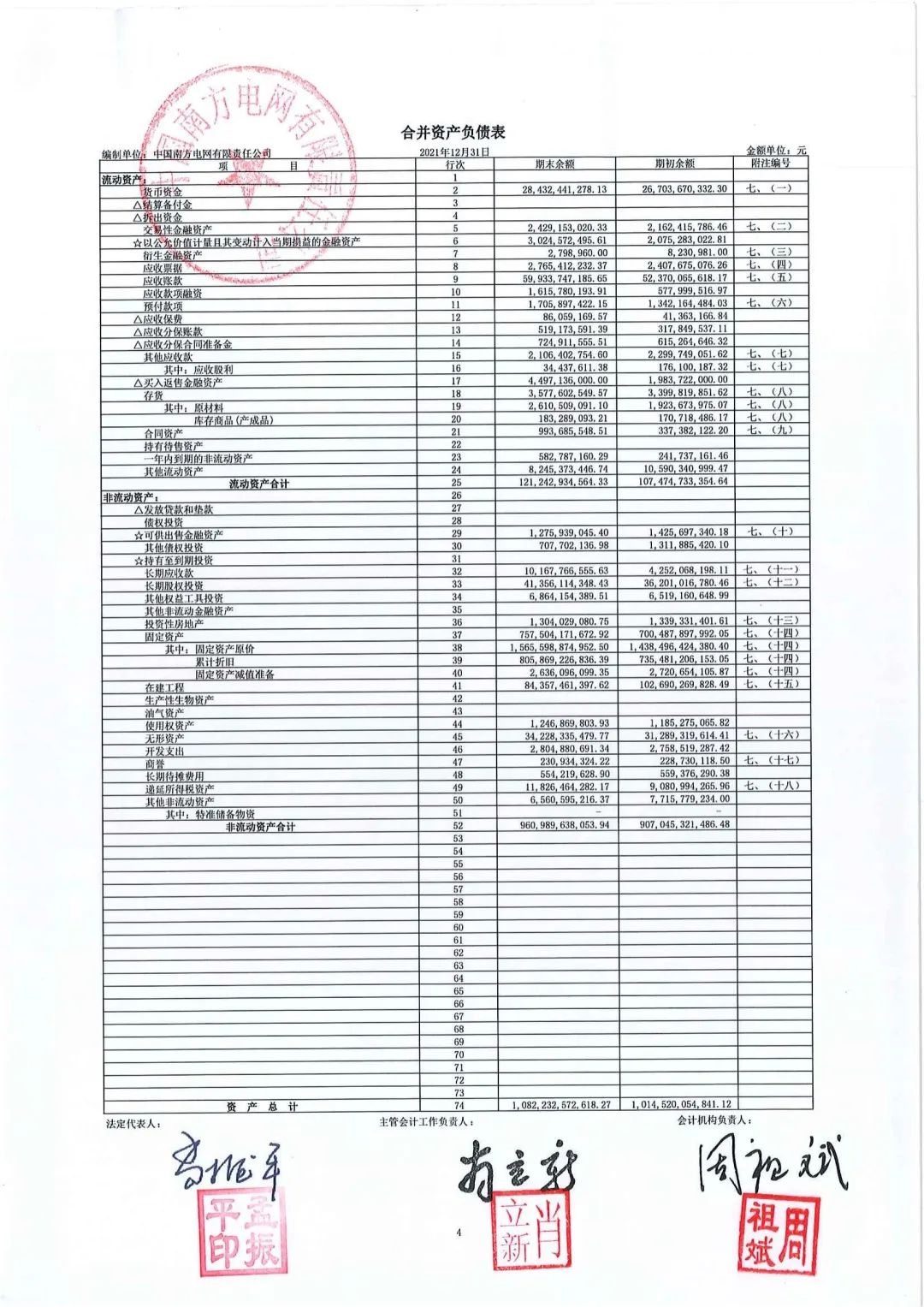 本網(wǎng)訊 4月29日,中國(guó)南方電網(wǎng)有限責(zé)任公司發(fā)布2021年財(cái)務(wù)報(bào)告。