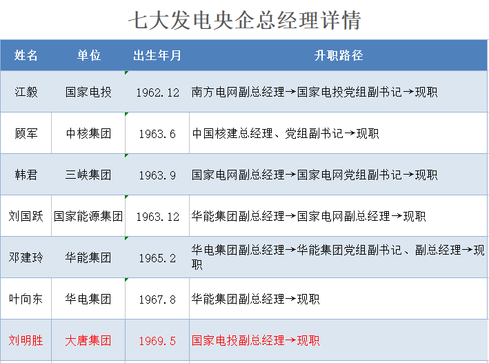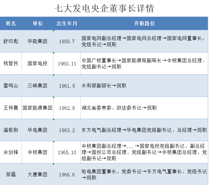 7位發(fā)電央企董事長(zhǎng)的詳細(xì)檔案(按年齡排序)